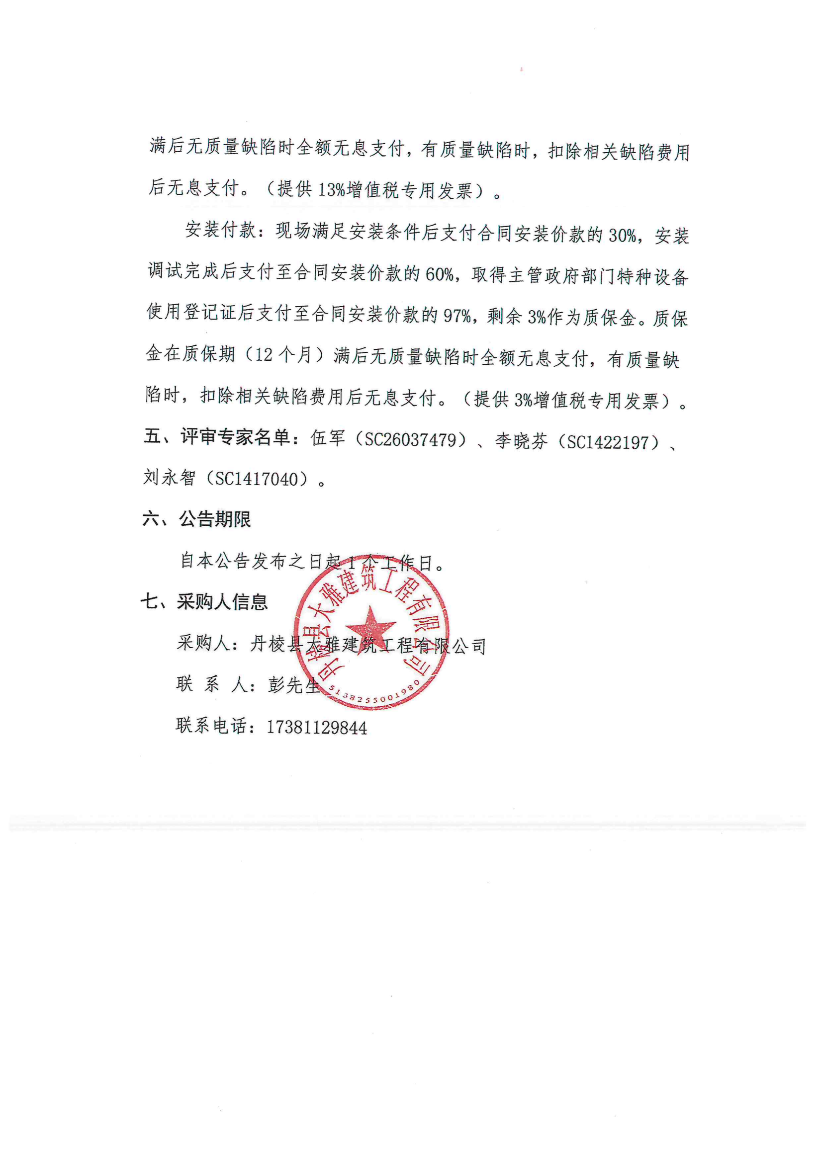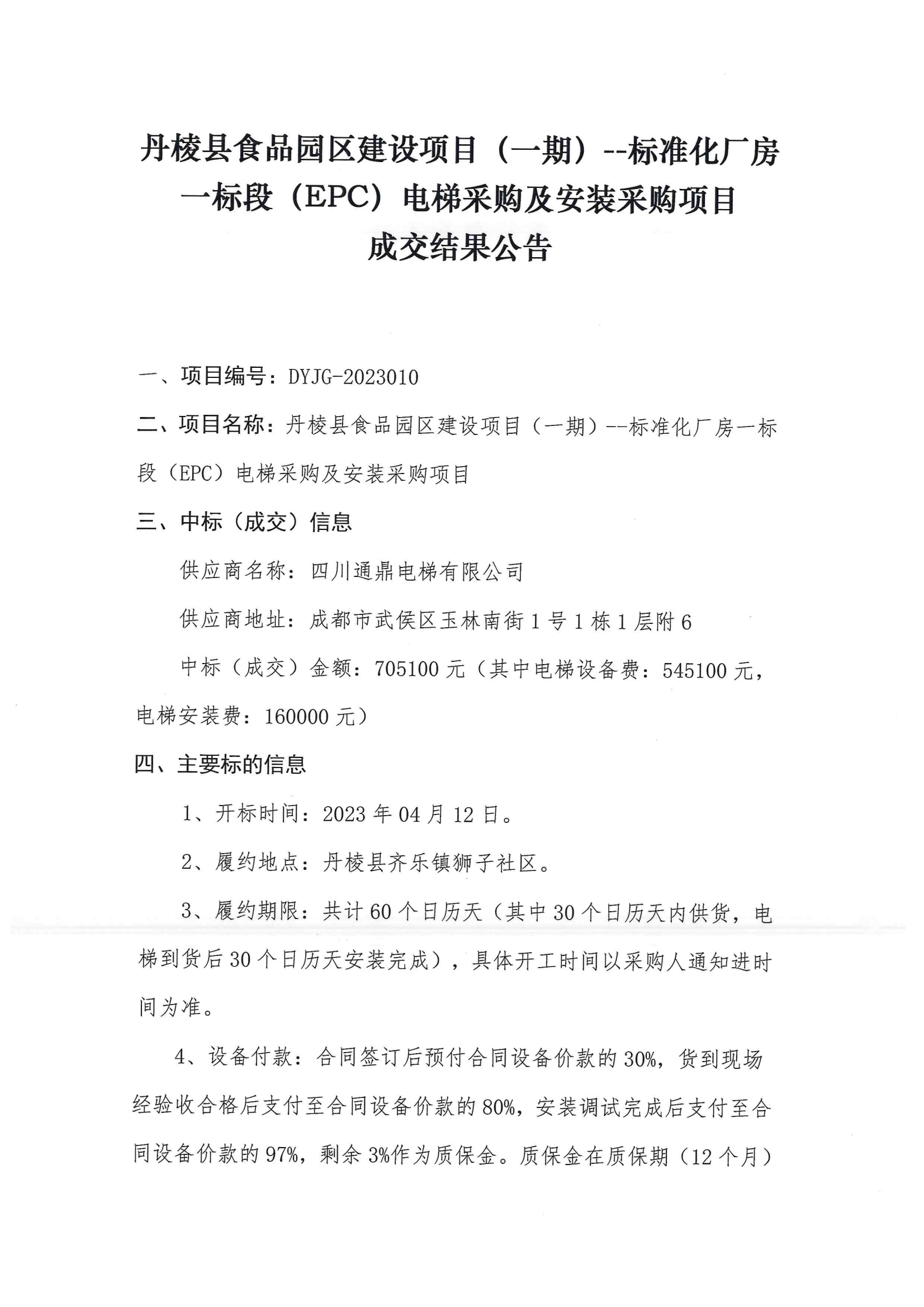 丹棱縣食品園區(qū)建設(shè)項目(一期)--標準化廠房一標段(EPC)電梯采購及安裝采購項目成交結(jié)果公告