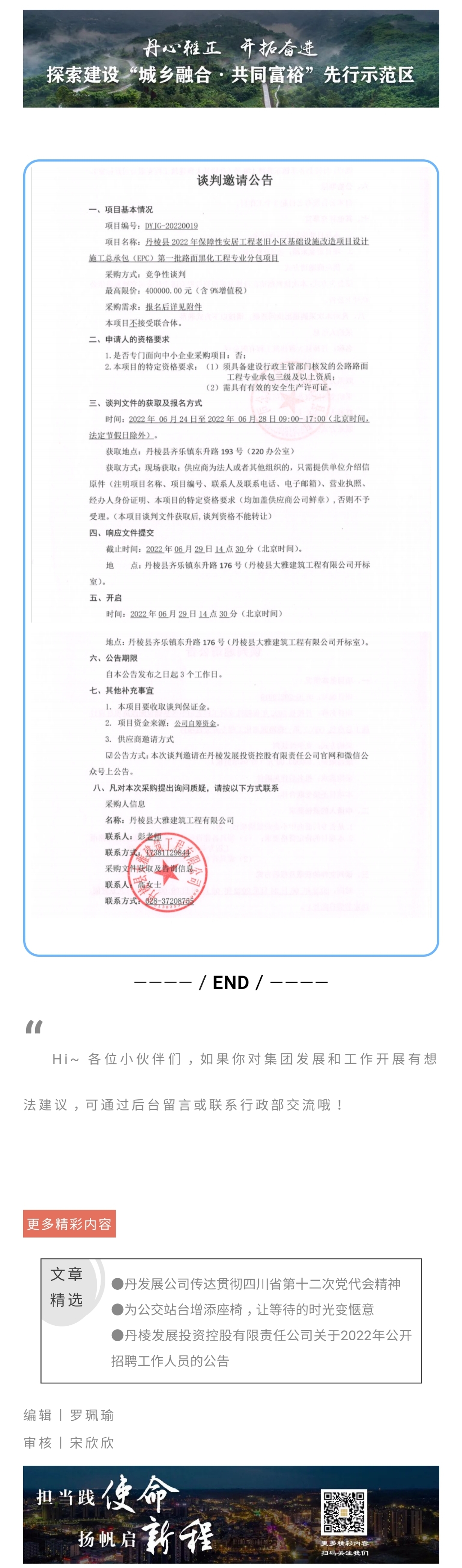 丹棱縣2022年保障性安居工程老舊小區(qū)基礎設施改造項目設計施工總承包(EPC)第一批路面黑化工程專業(yè)分包項目談判邀請公告