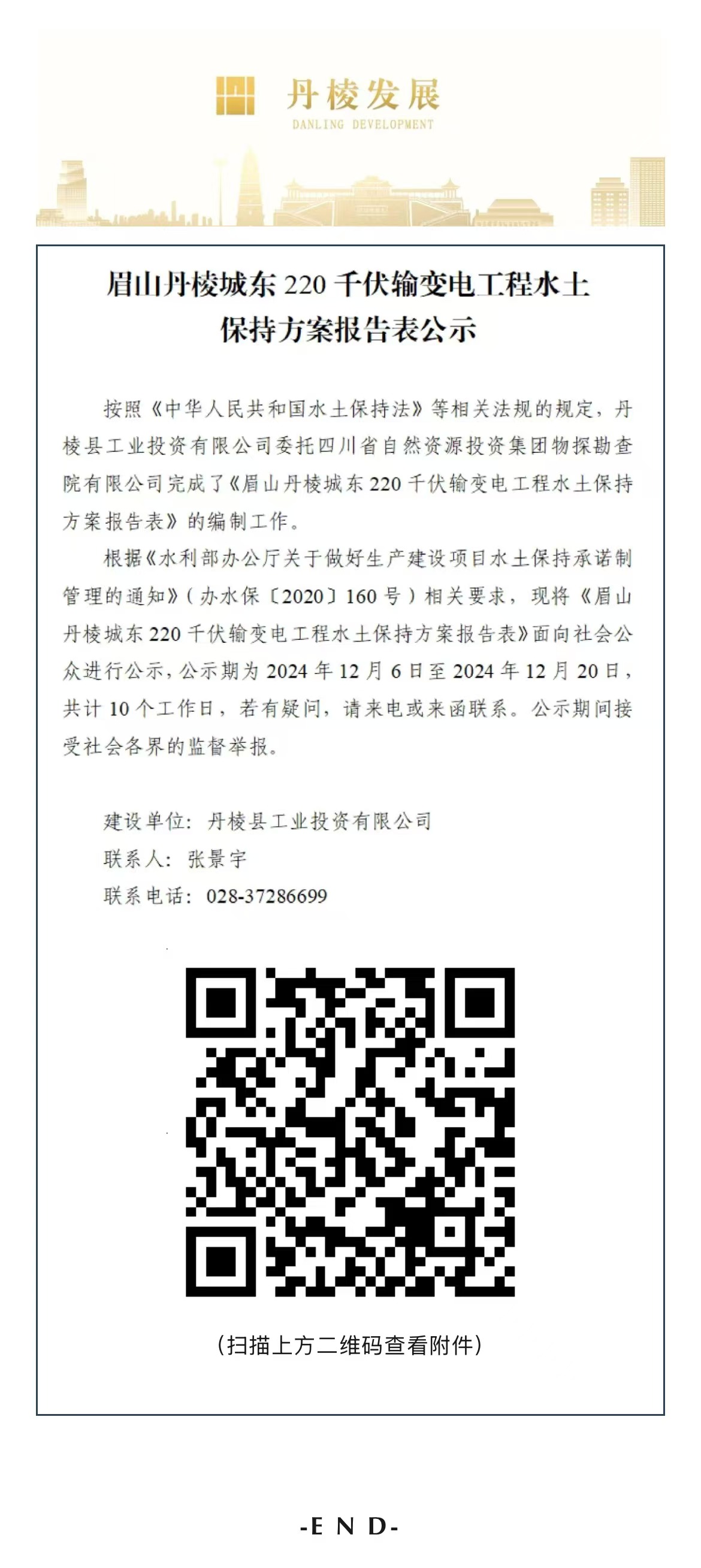 眉山丹棱城東220千伏輸變電工程水土 保持方案報告表公示