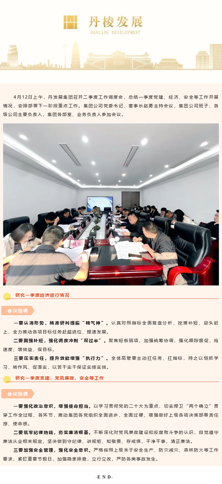 全面盤點(diǎn)提效能 昂首奮戰(zhàn)“雙過半”——丹發(fā)展集團(tuán)召開二季度工作調(diào)度會(huì)