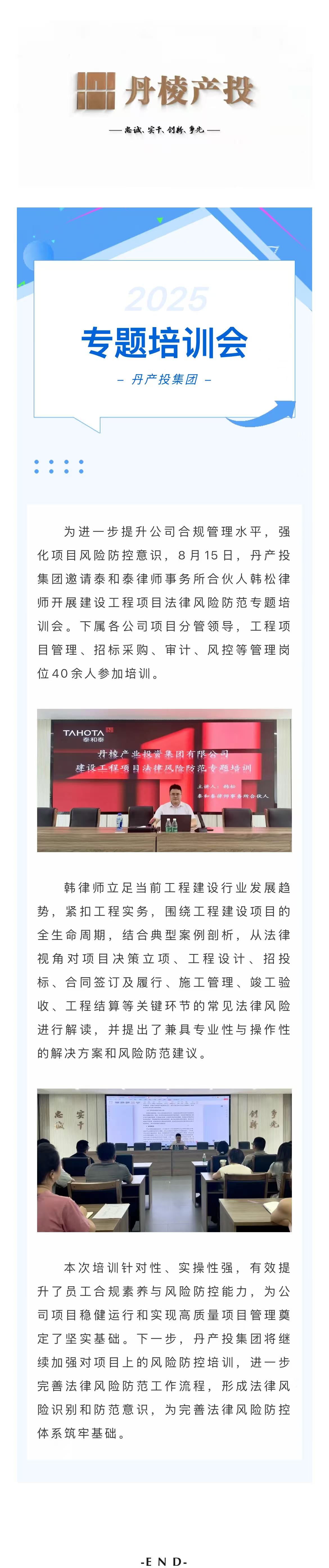 丹產(chǎn)投集團(tuán)開(kāi)展建設(shè)工程項(xiàng)目法律風(fēng)險(xiǎn)防范專(zhuān)題培訓(xùn)會(huì)