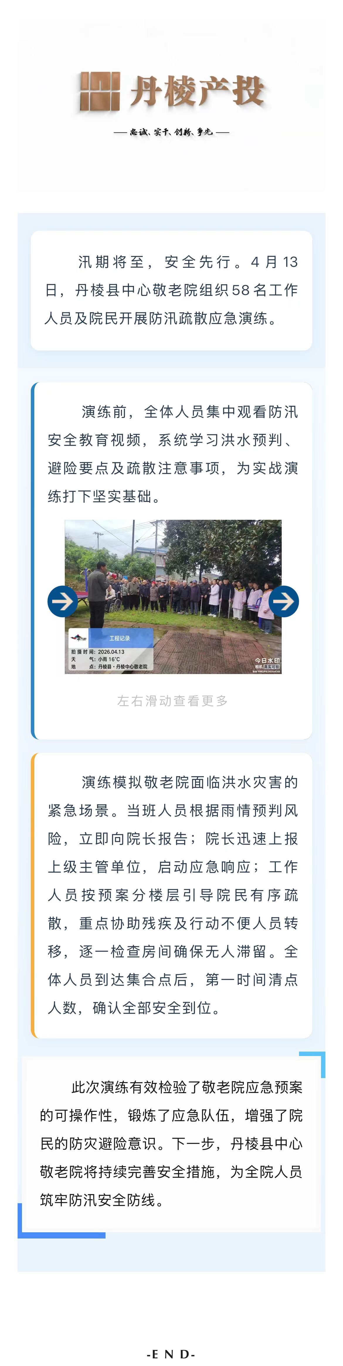 【縣城投公司】丹棱縣中心敬老院開展防汛疏散應(yīng)急演練