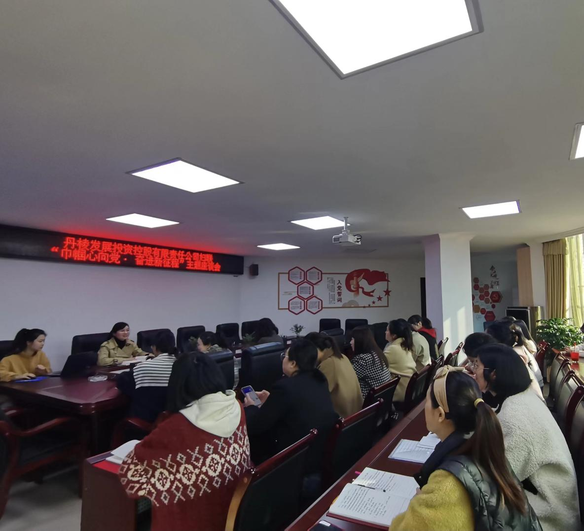 為慶祝國際勞動婦女節(jié),3月8日上午10點,丹發(fā)展公司組織全體女員工開展“巾幗心向黨·奮進新征程”主題座談會,會議由婦聯(lián)主席邱希娟同志主持。